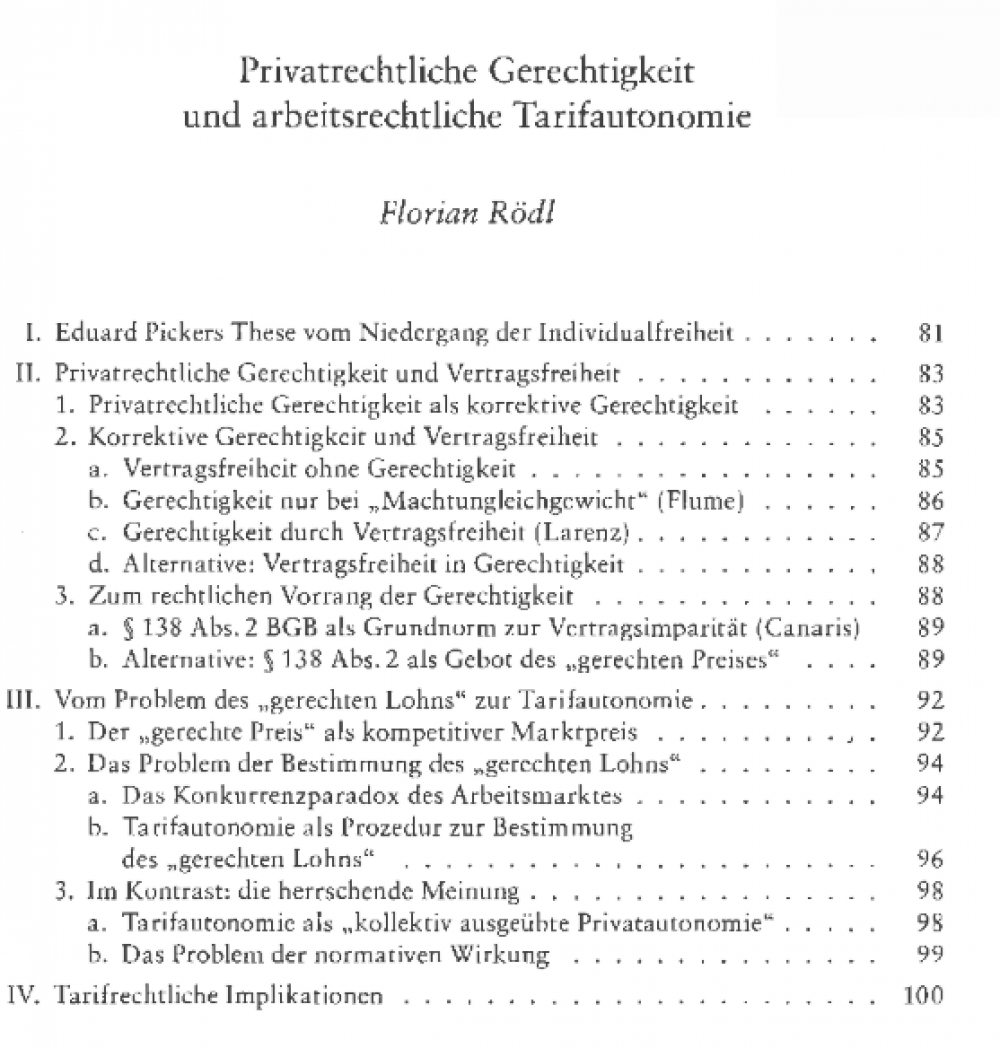 Florian Rödl (2012): Privatrechtliche Gerechtigkeit und arbeitsrechtliche Tarifautonomie
