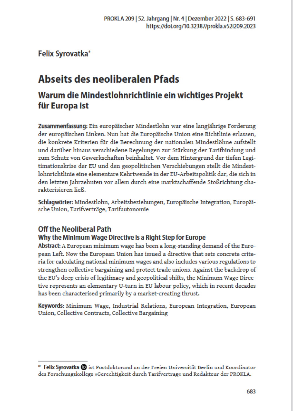 Felix Syrovatka (2022): Abseits des neoliberalen Pfads. Warum die Mindestlohnrichtlinie ein richtiger Schritt für Europa ist